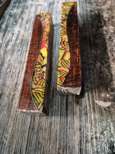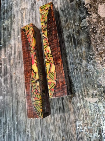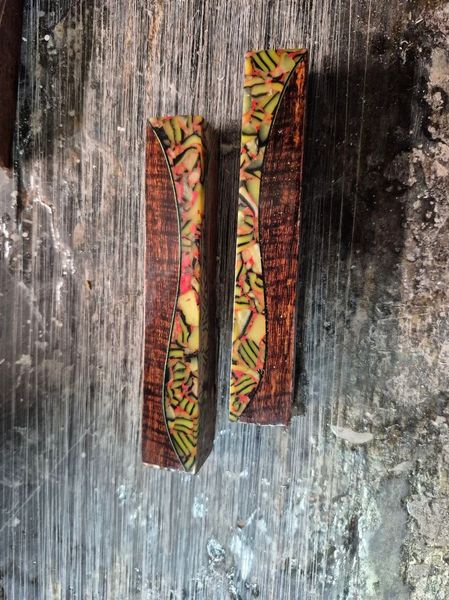 Hawaiian curly koa and colorful acrylic. . Divided with contrasting dyed