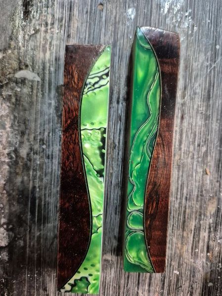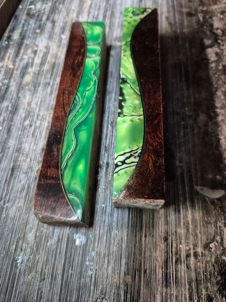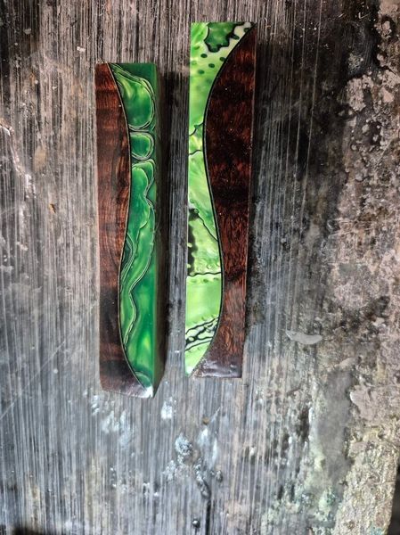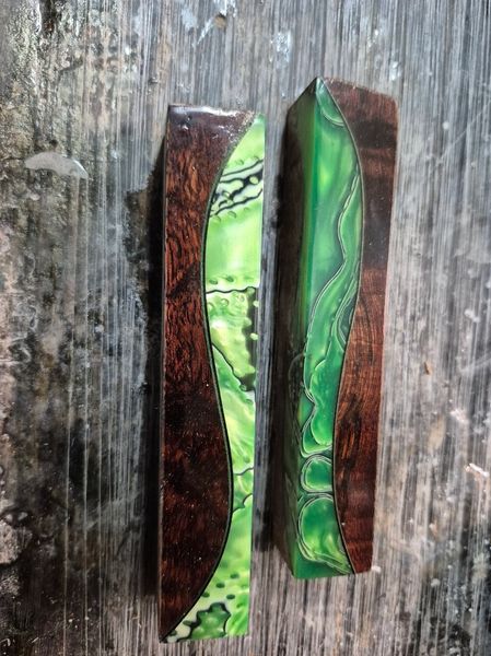 Hawaiian curly koa and colorful acrylic. . Divided with contrasting dyed